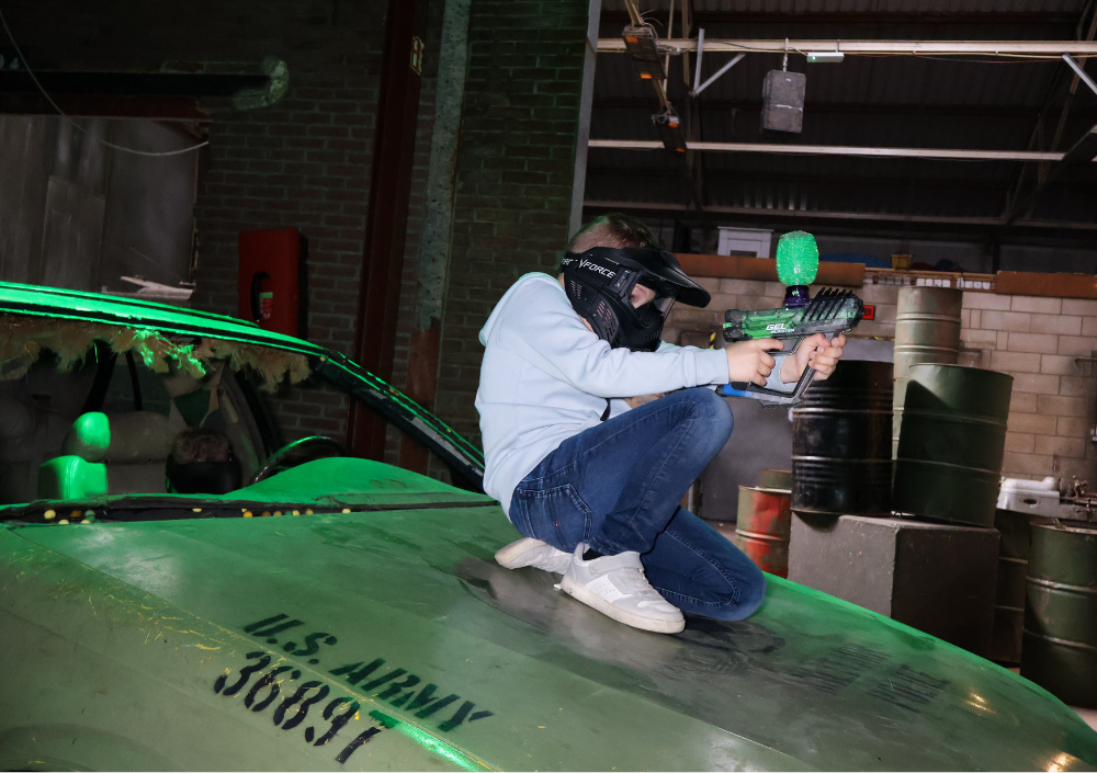 Gellyball is een spannende en innovatieve variant op paintball. In plaats van verfballen speel je met gellyballs. Dit zijn kleine, waterige balletjes die bij contact uit elkaar spatten en volledig oplossen. Dit milieuvriendelijke alternatief laat geen sporen of rommel achter, waardoor je zorgeloos kunt spelen zonder je kleding of de omgeving na een battle schoon te moeten maken. Dankzij de zachtere impact laat Gellyball geen blauwe plekken achter, waardoor het ideaal is voor iedereen die de adrenaline van paintball wil ervaren, maar dan zonder al te veel pijn.